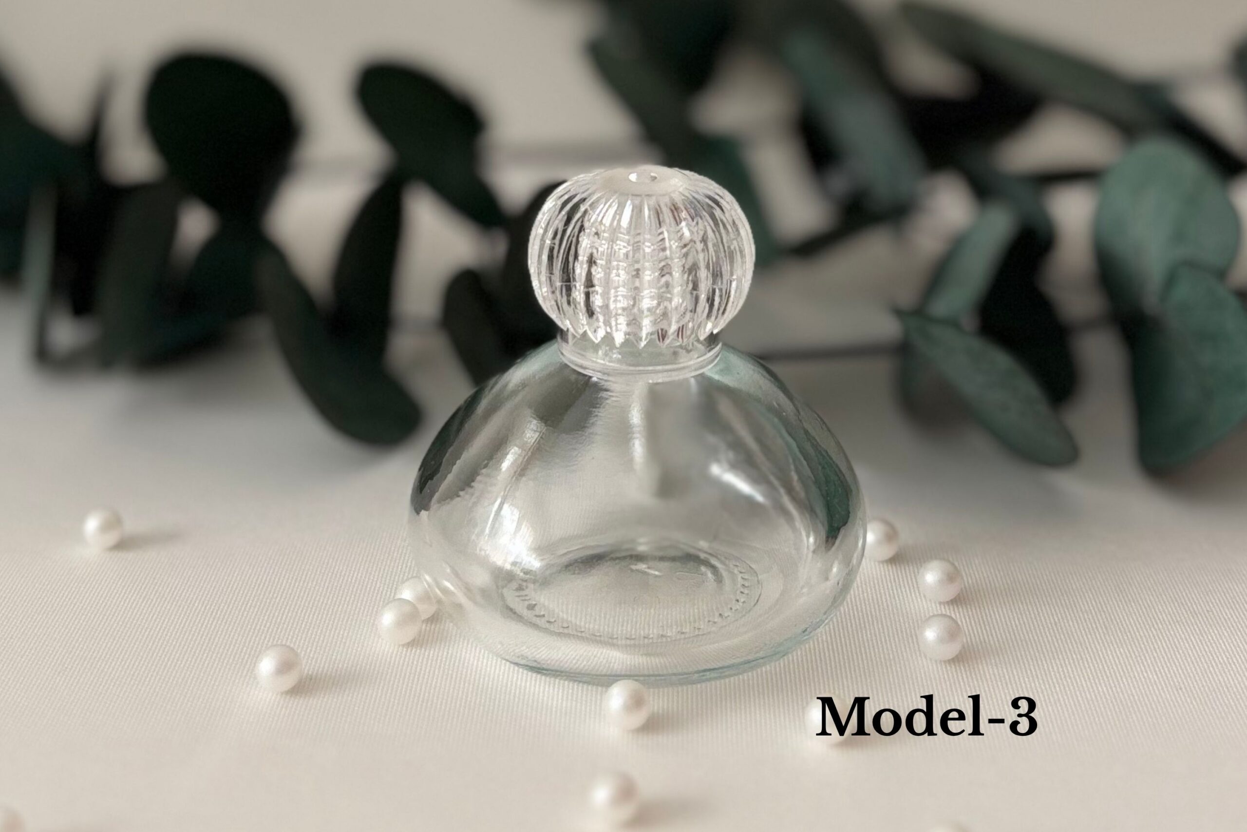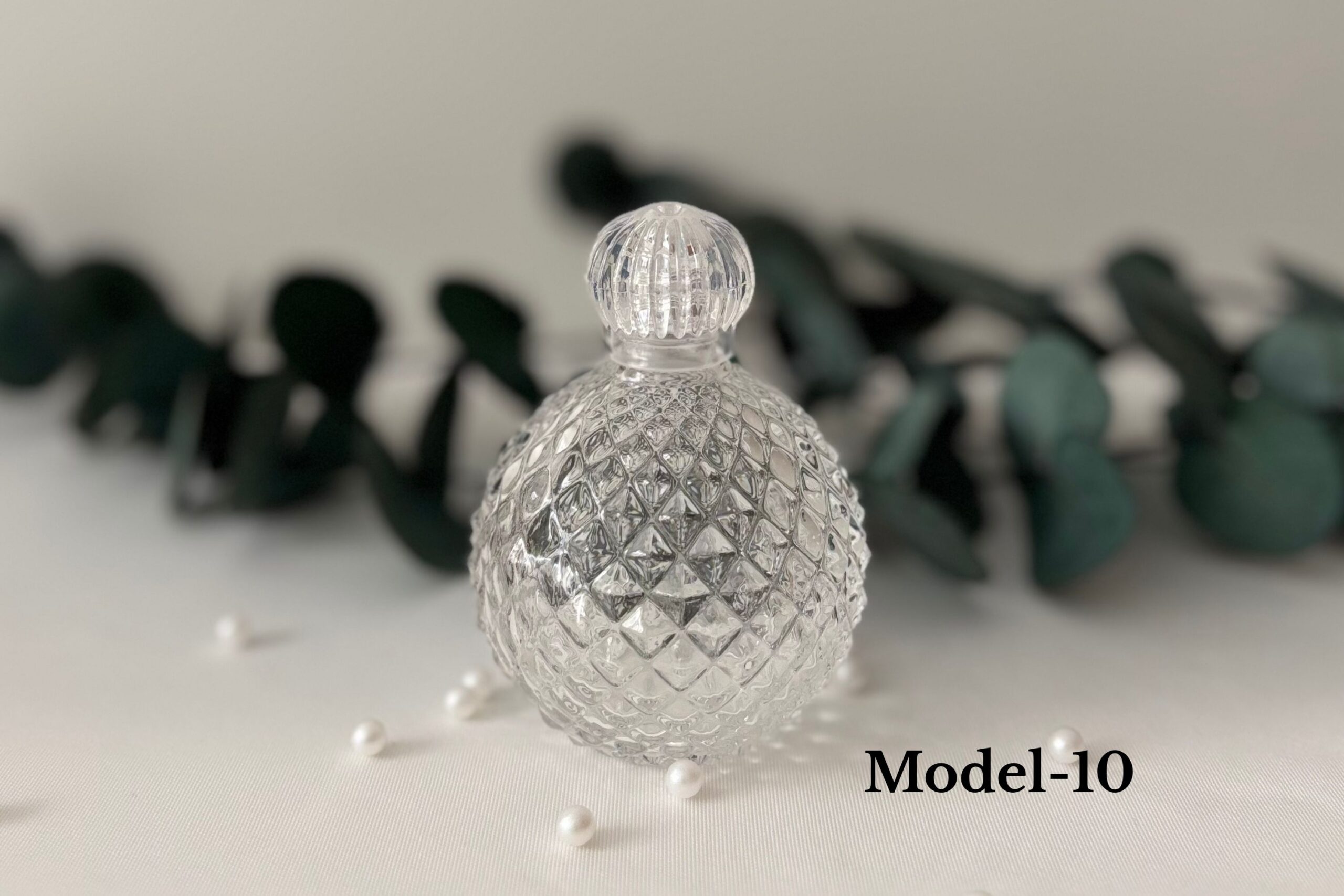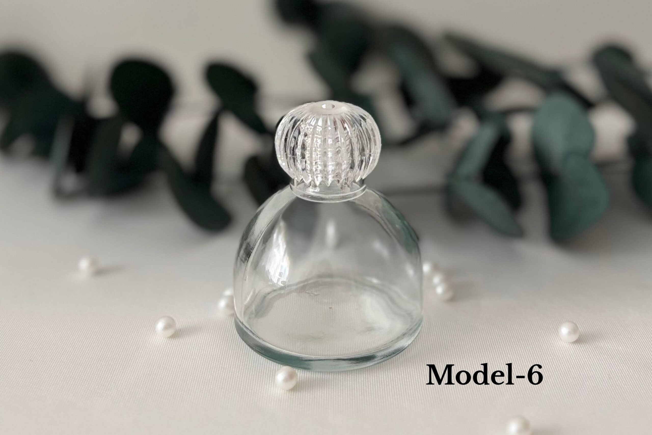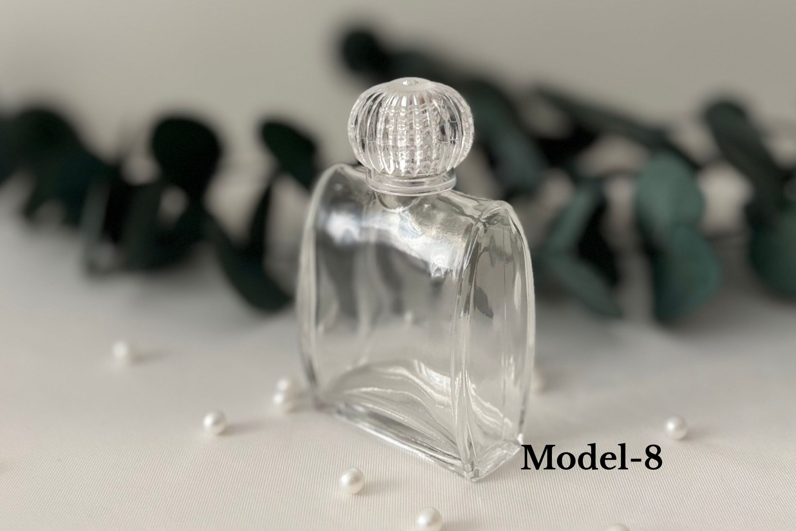 Modern ve şık görünümüyle öne çıkan bu cam şişeler, üst kısmındaki kristal formundaki plastik kapağıyla estetik bir bütünlük sunar.